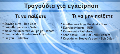Σε μελέτη σχετικά με τη μουσική και την ίαση, ερευνητές του Cardiff's University Hospital of Wales κατέληξαν σε λίστα τραγουδιών που μπορούν να ακούγονται στα χειρουργεία.