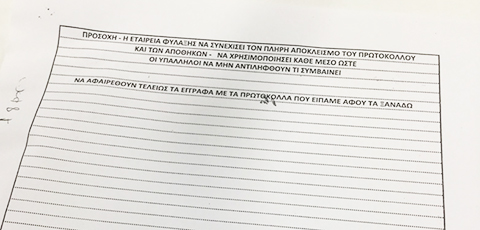 Το παρέλαβε υπάλληλος του ΚΕΕΛΠΝΟ, ο οποίος το έστειλε στο σωματείο, στον Άρειο Πάγο και στην επιθεωρήτρια Υγείας.