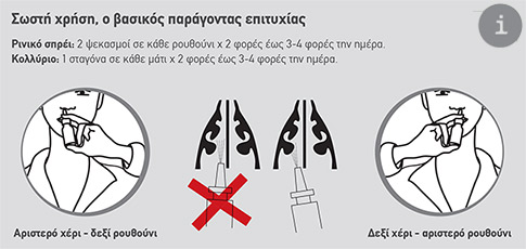 Για το ρινικό σπρέι αρκούν 2 ψεκασμοί σε κάθε ρουθούνι, 2 έως 3-4 φορές την ημέρα.