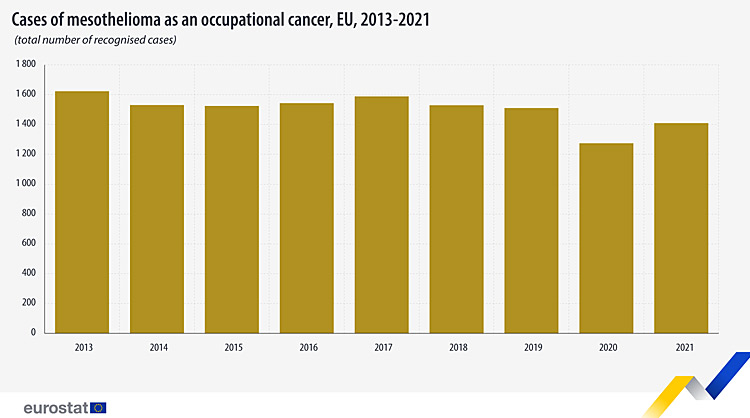 Υπήρχαν 13.530 περιπτώσεις καρκίνου μεσοθηλιώματος στην ΕΕ μεταξύ 2013 και 2021, αποκαλύπτουν νέα στοιχεία της Eurostat.