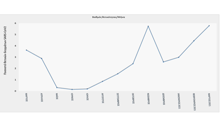 Η ομάδα του Εργαστηρίου ανέλυσε τα αποτελέσματα των ελέγχων και διαπίστωσε πως τον Μάρτιο του 2020 (όταν ξεκινούσε το πρώτο επιδημικό κύμα), 3,6% των δειγμάτων ανιχνεύονταν θετικά στο νέο κορωνοϊό Sars-Cov2. Σήμερα, το ποσοστό θετικότητας βρίσκεται στο 5,77%, υψηλότερο και από αυτό του περασμένου Νοεμβρίου ο οποίος ήταν μέχρι πρότινος ο χειρότερος μήνας.