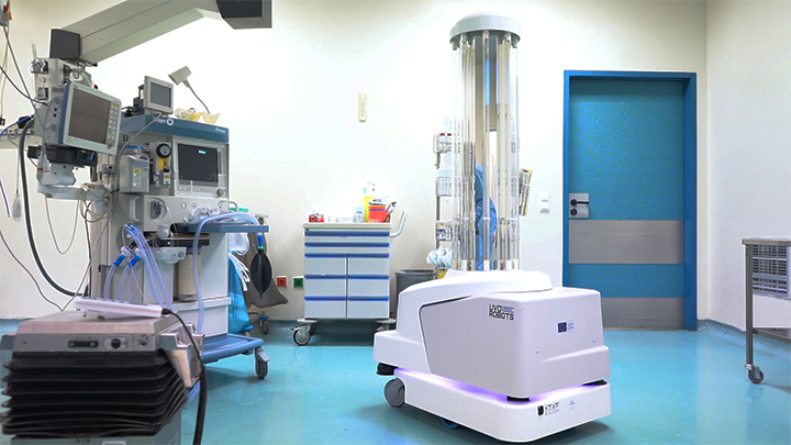 Έχει τη δυνατότητα να απολυμαίνει τους απλούς θαλάμους ασθενών μέσα σε μόλις 10 λεπτά, χωρίς ανθρώπινη παρουσία, καθώς ο χειρισμός του γίνεται εξ αποστάσεως, μέσω εφαρμογής για κινητά τηλέφωνα ή τάμπλετ. Μια φόρτισή του αρκεί για την απολύμανση 18 και πλέον θαλάμων.