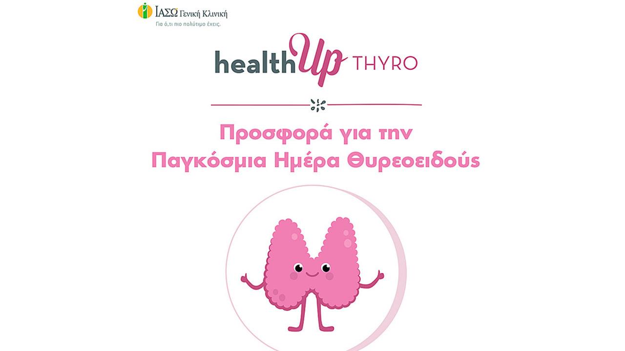 Επισκεφθείτε το νέο τμήμα Check-Up του ΙΑΣΩ Γενική Κλινική και ζητήστε το πακέτο healthUp THYRO σε ειδική προνομιακή τιμή, μόνο 39 €, κάνοντας δωρεάν το υπερηχογράφημα θυρεοειδούς και την εξέταση από Ενδοκρινολόγο. Η προσφορά ισχύει για τους 30 πρώτους που θα καλέσουν μέχρι τις 31/05/2021 για να κλείσουν το ραντεβού τους.