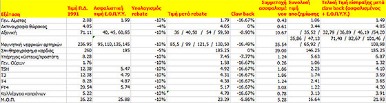 2) Η τιμή για την γενική ούρων ξεκινά από 1,76 ευρώ και αν αφαιρεθούν η έκπτωση και το clawback τότε το εργαστήριο εισπράττει 1,32 ευρώ