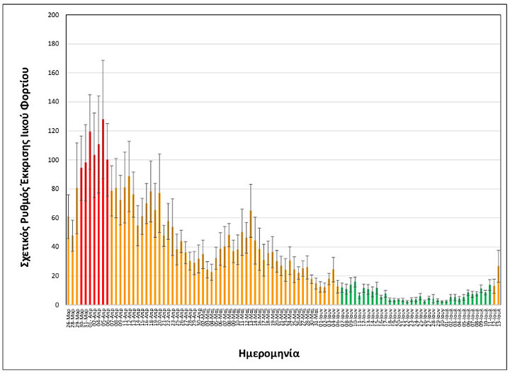 Έτσι, η μέση τιμή των δύο τελευταίων μετρήσεων –της Δευτέρας και της Τρίτης- ήταν αυξημένη κατά 78% σε σχέση με αυτή των δύο αμέσως προηγούμενων, του Σαββάτου και της Κυριακής, αυξημένη κατά 192% σε σχέση με την τιμή των αντίστοιχων ημερών της προηγούμενης εβδομάδας.