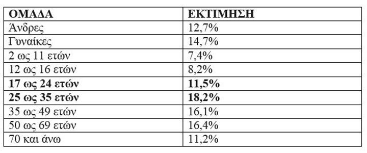 Σε επιστημονική έρευνα, που έγινε από τον Απρίλιο του 2020 ως το Μάρτιο του 2021 στο Ηνωμένο Βασίλειο, οι συμμετέχοντες κλήθηκαν να δηλώσουν αν είχαν κάποιο σύμπτωμα που επέμενε, 12 εβδομάδες μετά τη νόσηση. Τα στοιχεία της εθνικής στατιστικής υπηρεσίας του Ηνωμένου Βασιλείου, που παρατίθενται στον παρακάτω πίνακα, είναι ενδεικτικά της συχνότητας του long COVID, ακόμα και στις νεαρές ηλικίες.