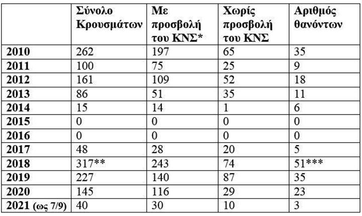 *** Περιλαμβάνεται ένας θάνατος νοσηλευόμενου ασθενούς που μολύνθηκε το 2018 και κατέληξε το 2019.