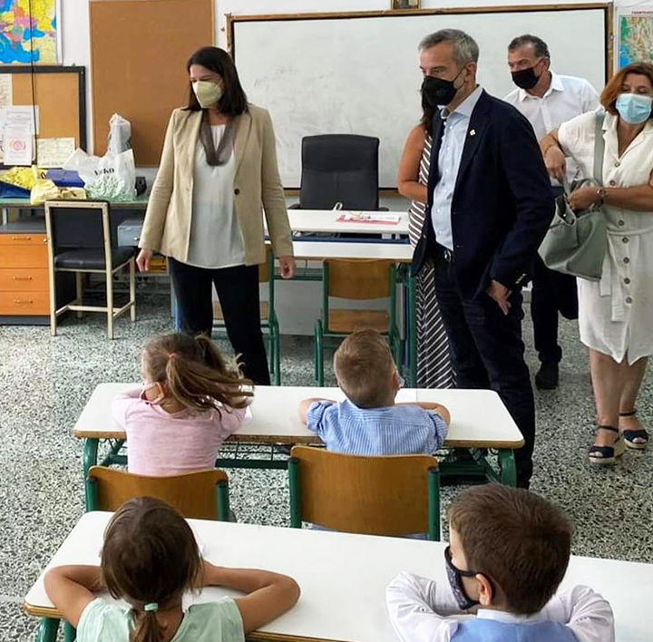 Η κ. Κεραμέως είχε σύντομες συνομιλίες με παιδιά του δημοτικού. Μεταξύ άλλων, ρώτησε για τη δυσκολία στη χρήση μάσκας, αλλά και στη διενέργεια των self tests. Ευχαρίστησε τα μέλη της εκπαιδευτικής κοινότητας, ενώ έκανε αναφορά στις 11.700 προσλήψεις εκπαιδευτικών που έγιναν φέτος για πρώτη φορά από το 2010, καθώς και σε σειρά μεταρρυθμίσεων στην εκπαίδευση, που έχουν ψηφιστεί και υλοποιούνται από φέτος. Μεταξύ αυτών το νηπιαγωγείο από τα 4 ,τα αγγλικά από το νηπιαγωγείο, τα εργαστήρια δεξιοτήτων, τα σχεδόν διπλάσια πρότυπα και πειραματικά σχολεία.
