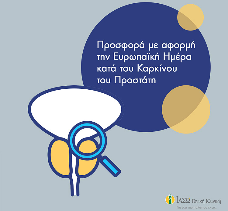 Το Τμήμα Check-Up του ΙΑΣΩ Γενική Κλινική με αφορμή την Ευρωπαϊκή Ημέρα κατά του Καρκίνου του Προστάτη και θέλοντας να επισημάνει την αξία της πρόληψης και της έγκαιρης διάγνωσης, προσφέρει το πακέτο health Up PROSTATE στην προνομιακή τιμή των 45€ με τη χρήση παραπεμπτικού ΕΟΠΥΥ και στα 59€ χωρίς χρήση παραπεμπτικού.
