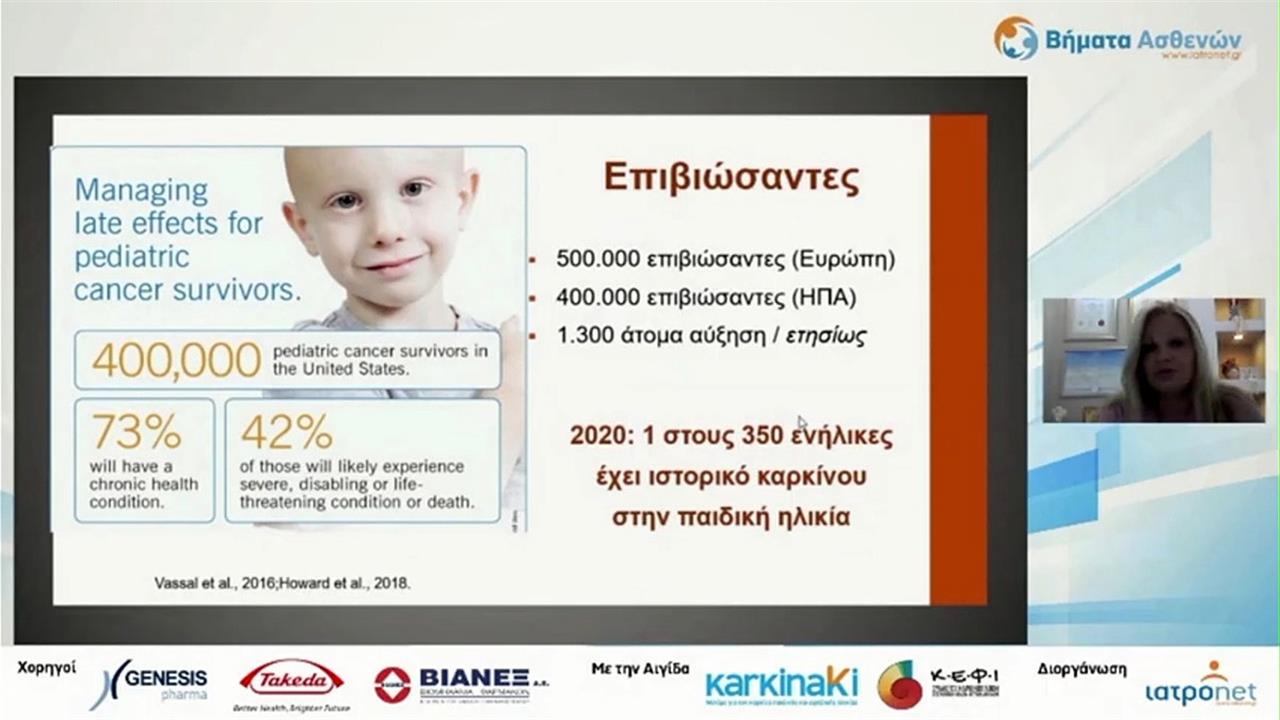 Το ποσοστό επιβίωσης στα παιδιά που θα νοσήσουν από καρκίνο αυξάνεται σημαντικά με τον καιρό. Σύμφωνα με τα στοιχεία, 1 στους 350 ενήλικες έχει ιστορικό καρκίνου στην παιδική ηλικία, τουλάχιστον 500 χιλ. είναι οι επιβιώσαντες από παιδικό καρκίνο στην Ευρώπη, 400 χιλ. στις ΗΠΑ ΚΑΙ 1300 άτομα προστίθενται σε ετήσια βάση στον αριθμό των επιβιωσάντων.