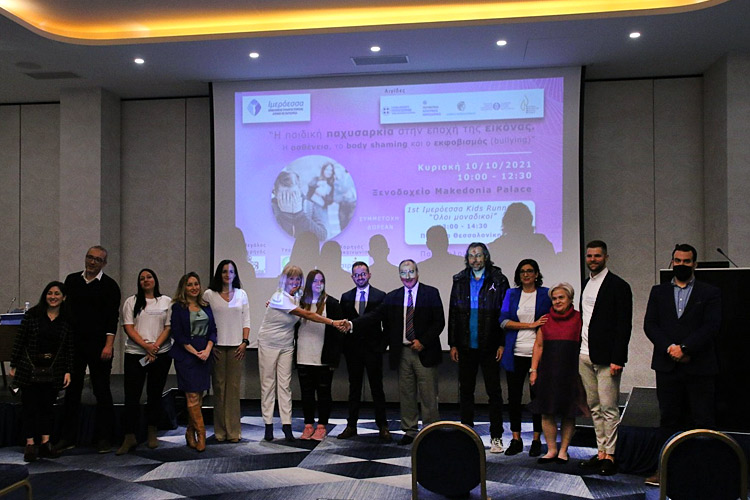 Η συχνότητα της παιδικής και εφηβικής παχυσαρκίας αυξάνεται παγκοσμίως και δυστυχώς, η Ελλάδα έρχεται πρώτη στα ποσοστάεφηβικής παχυσαρκίας στηνΕυρώπη. Η παιδική-εφηβική παχυσαρκία έχει πολυπαραγοντική αιτιολογία και αποτελεί χρόνια νόσο, αναγνωρισμένη από πολλές επιστημονικές εταιρείες.Τα παχύσαρκα παιδιά-έφηβοι πιο συχνά πάσχουν από υπέρταση, προδιαβήτη/σακχαρώδη διαβήτη, υπνική άπνοια, μη αλκοολική λιπώδη νόσο του ήπατος, πρώιμη υποκλινική αθηροσκλήρωση, δυσλιπιδαιμία, καρδιαγγειακά, ορθοπεδικά και νεφρικά νοσήματα, αλλά και από καρκίνο. Επιπρόσθετα, θα πρέπει να έχουμε υπόψη μας ότι το παχύσαρκο παιδί-έφηβος θα γίνει παχύσαρκος ενήλικας. Επομένως, χρειάζεται έγκαιρη παρέμβαση με πολυπαραγοντική αντιμετώπιση της παχυσαρκίας, με διατροφή, φυσική δραστηριότητα, συμπεριφορική θεραπεία, φάρμακα ή χειρουργείο (σε ειδικές περιπτώσεις, βάση ενδείξεων, από εξειδικευμένες ιατρικές ομάδες), με ταυτόχρονη ενεργό συμμετοχή του οικογενειακού περιβάλλοντος. Ο προγραμματισμένος παιδικός αγώνας 1st imeroessa kids running για παιδιά ηλικίας 9-12 ετών, στην παραλία Θεσσαλονίκης ματαιώθηκε λόγω των καιρικών συνθηκών. Ωστόσο, τα παιδιά που θα συμμετείχαν ήταν παρόντα στην Ημερίδα και έλαβαν τα δώρα τους από τους διοργανωτές.