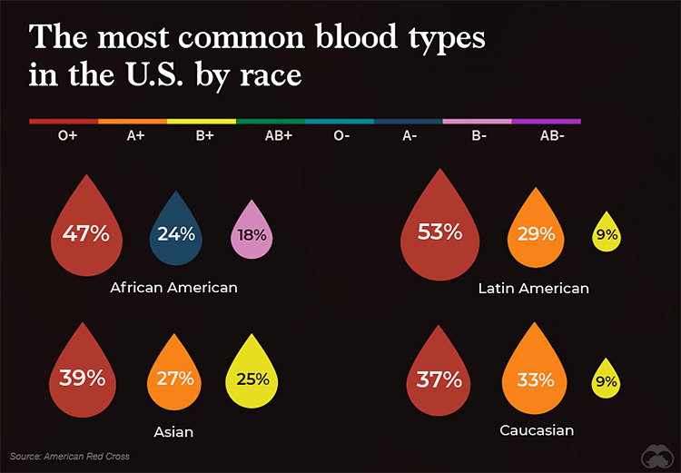 Παρόλο που η εθνικότητα και η γενετική διαδραματίζουν ζωτικό ρόλο στον προσδιορισμό της ομάδας αίματος ενός ατόμου, μπορούμε να δούμε πολλούς διαφορετικούς τύπους αίματος κατανεμημένους παγκοσμίως.