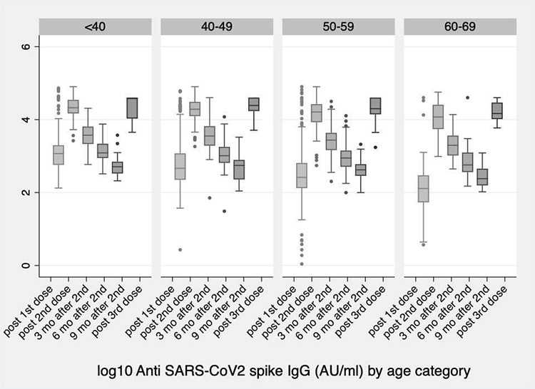 - Τα αντισώματα μετά την τρίτη δόση δεν παρουσιάζουν σημαντικές διαφορές μεταξύ των διάφορων ηλικιακών ομάδων. Όλες οι ηλικιακές ομάδες, που ξεκινούν από τα 20 και φτάνουν ως τα 69 έτη, ανεβάζουν περίπου το ίδιο.