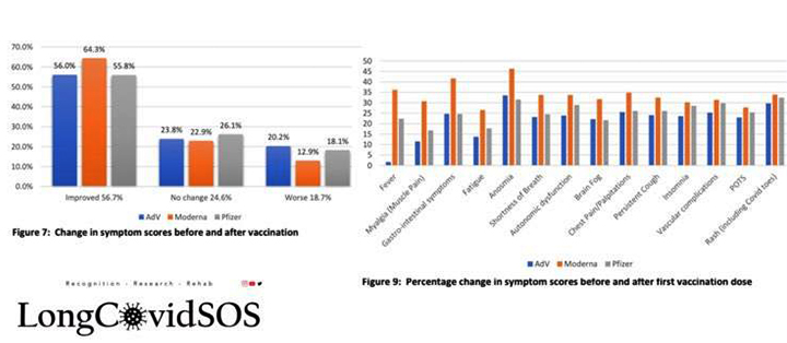 Όσοι είδαν βελτίωση, ανέφεραν πως τα συμπτώματά τους υποχώρησαν σε ποσοστό μεταξύ 23% και 31% σε σύγκριση με το σκορ πριν από τον εμβολιασμό, ανάλογα με το εμβόλιο.