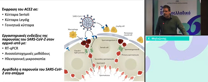 Σε παρόμοιο πνεύμα, ο Χ. Μηλιώνης, ενδοκρινολόγος, επιμελητής Β' ΕΣΥ στο "Έλενα Βενιζέλου", ανέφερε πως ο νέος κορωνοϊός μπορεί να προσβάλλει τον ορχικό ιστό, όπως ήταν γνωστό ότι έκανε και ο παλιός (SARS-CoV-1)