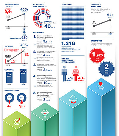 H κορυφαία ελληνική φαρμακοβιομηχανία του Ομίλου Γιαννακόπουλου, η ΒΙΑΝΕΞ ΑΕ, έσπασε το 2021 όλα τα ρεκόρ στους οικονομικούς της δείκτες. Με ενοποιημένες πωλήσεις 405,9 εκ. ευρώ, κατέγραψε αύξηση 34,9 εκ. ευρώ, ποσοστό 9,4%, σε σχέση με το 2020, έχοντας εδραιώσει τη θέση της στην κορυφή. Ο κύκλος εργασιών της είναι ο μεγαλύτερος στα 95 χρόνια της λειτουργίας της και ο υψηλότερος μεταξύ όλων των εγχώριων φαρμακοβιομηχανιών.