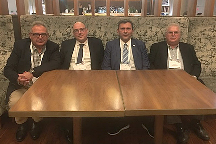 O Dr. med. B. Παυλιδέλης με τους διοργανωτές του συνεδρίου. Από αριστερά: Καθ. I. Καστανιουδάκης (Ιωάννινα), Καθ. Μ. Κατωτομιχελάκης (Αλεξανδρούπολη), Καθ. Ι. Κωνσταντινίδης (Θεσ/νίκη).