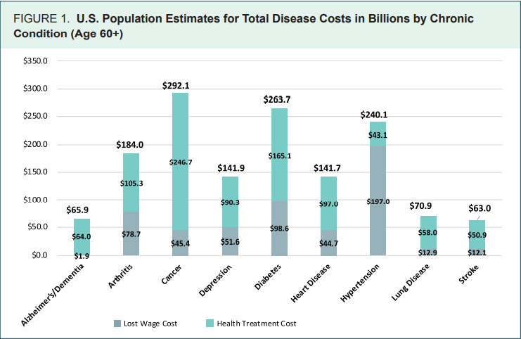 Ενώ ο διαβήτης, ο καρκίνος και η υπέρταση είναι οι πιο δαπανηρές χρόνιες ασθένειες σε όλους τους Αμερικανούς ηλικίας 60 ετών και άνω, όταν λαμβάνεται υπόψη τόσο η θεραπεία όσο και οι χαμένοι μισθοί, υπάρχουν διακυμάνσεις ανά φυλή/εθνικότητα, αναφέρει η έκθεση.