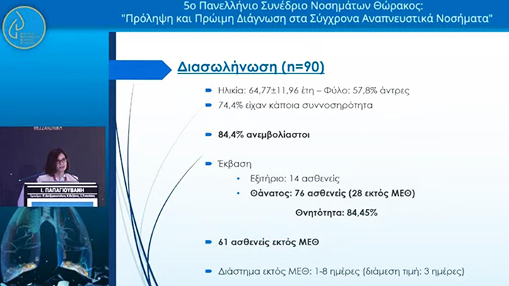 Συγκλονιστικά στοιχεία, που φανερώνουν τη βαρύτητα της COVID-19 λοίμωξης που προκαλούσε η παραλλαγή Δέλτα το περασμένο φθινόπωρο και χειμώνα, την τρομακτική πίεση που προκαλούσε στο σύστημα Υγείας και την συνεπακόλουθη τεράστια θνητότητα όσων χρειάστηκαν διασωλήνωση, παρουσιάστηκαν στο 5ο Πανελλήνιο Συνέδριο Νοσημάτων Θώρακος, που πραγματοποιείται στη Θεσσαλονίκη.