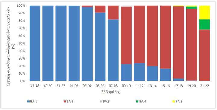 Όπως φαίνεται στο γράφημα που ακολουθεί, η παρουσία των δύο νέων αυτών παραλλαγών ξεκίνησε την εβδομάδα 17 - 18 (25 Απριλίου έως 8 Μαΐου).