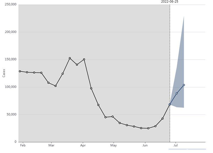 Συνολικά, οι υπεύθυνοι του ECDC αναμένουν αυξητικές τάσεις σε κρούσματα, σταθεροποίηση στις εισαγωγές στα νοσοκομεία και αύξηση στους θανάτους έως και τις 10 Ιουλίου.