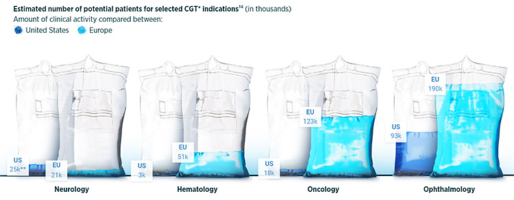 Ακαδημαϊκοί ερευνητές, βιοτεχνολογικές και φαρμακευτικές εταιρείες στην Ευρώπη έχουν συμβάλει καθοριστικά στην ανάπτυξη του τομέα της γονιδιακής θεραπείας. Μεταξύ του 2017 και του 2019, πραγματοποιήθηκαν 120.000 δημοσιεύσεις σε θέματα κυτταρικής και γονιδιακής θεραπείας (CGT) έναντι 72.000 και 100.000 που ήταν στις ΗΠΑ και την Κίνα αντίστοιχα. Παράλληλα, η καθηγήτρια Emmanuelle Charpentier στη Μονάδα Max Planck που ασχολείται με την Επιστήμη των Παθογόνων στο Βερολίνο ήταν από κοινού νικήτρια του Βραβείου Νόμπελ Χημείας που δόθηκε το 2020, ως αναγνώριση της συμβολής της στην ανάπτυξη εργαλείων για την επεξεργασία γονιδίων.