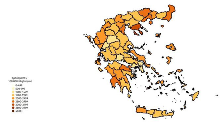 Οι 21 Π.Ε. με πάνω από 1.000 κρούσματα ανά 100.000 κατοίκους