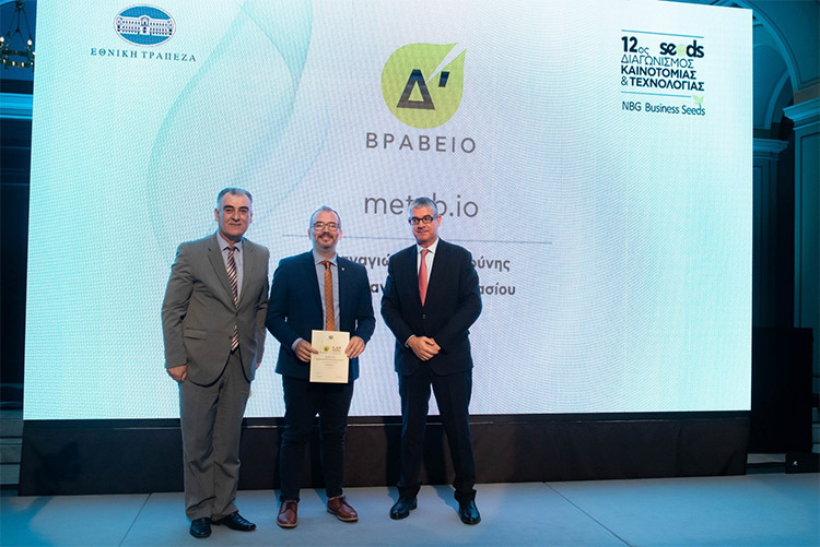 Η πλατφόρμα που διακρίθηκε στον 12ο Διαγωνισμό Καινοτομίας & Τεχνολογίας της Εθνικής Τράπεζας, μια δράση του προγράμματος NBG Business Seeds για τη στήριξη της εξωστρέφειας καινοτόμων επιχειρήσεων, διαθέτει διεθνές δίπλωμα ευρεσιτεχνίας PCT και εισήχθη στην αγορά το 2020, ενώ πολύ γρήγορα διεκδίκησε και κέρδισε τα δύο πρώτα συμβόλαιά της, εξυπηρετώντας βιοτράπεζες σε Ελλάδα και Ευρώπη. Σήμερα βρίσκεται στη διαδικασία δημιουργίας θυγατρικής εταιρείας στη Βουλγαρία, με την χρηματοδοτική υποστήριξη του Βουλγαρικού VC, Innovation Capital. Η Metabio έχει πλέον παρουσία σε Ελλάδα, Βουλγαρία, Γαλλία, Νότιο Αφρική, Ζάμπια και επεκτείνεται συνεχώς.[m