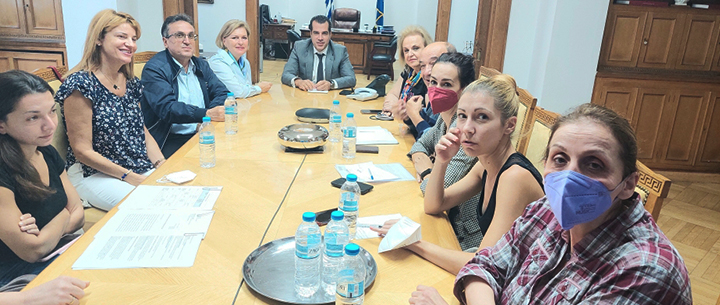 Το θέμα συζητήθηκε την Πέμπτη, σε συνάντηση που είχε ο υπουργός Υγείας Θάνος Πλεύρης και η αναπληρώτρια υπουργός Υγείας Μίνα Γκάγκα με το διοικητικό συμβούλιο της Ένωσης Ιατρών Νοσοκομείων Αθήνας - Πειραιά (ΕΙΝΑΠ) και την πενταμελή επιτροπή από το "Αγία Σοφία" (φωτογραφία).