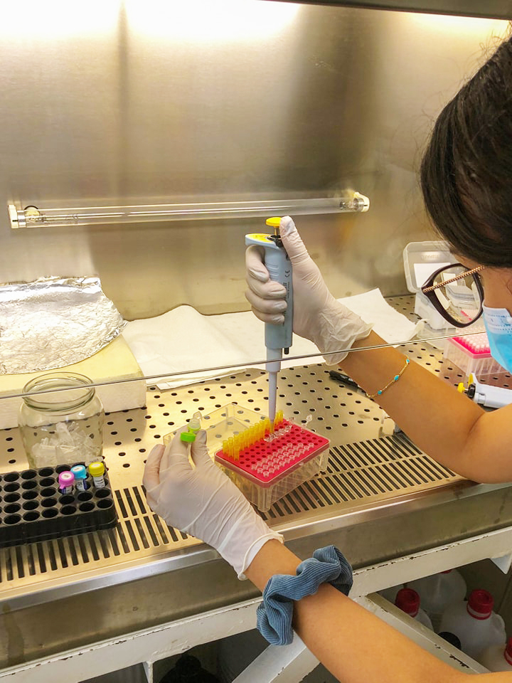 Επιλέχθηκε μια συγκεκριμένη μεθοδολογία ανίχνευσης των συγκεκριμένων βιοδεικτών, μέσω μιας πρωτεϊνης, η οποία ανιχνεύει στο δείγμα το μόριο - στόχο και συνδέεται μαζί του εκλεκτικά μέσω συμπληρωματικότητας. "Αλλάζει διαμόρφωση της πρωτεϊνης και ξεκινάει να κόβει ανεξέλεγκτα μόρια μονόκλωνων RNA, τα οποία βρίσκονται στο περιβάλλον της αντίδρασης. Για τον σκοπό αυτό εμείς προσθέσαμε και ένα μόριο ανιχνευτή, ένα μόριο reporter όπως λέγεται, το οποίο αποτελείται από μια φθορίζουσα ομάδα, ένα μικρό μονόκλωνο τμήμα RNA και έναν αποσβέστη", είπε η κ. Γουλιού και πρόσθεσε: "Όταν στο περιβάλλον της αντίδρασης υπάρχει ο βιοδείκτης μας, η πρωτεϊνη συνδέεται με τον βιοδείκτη, ενεργοποιείται η ικανότητα κοπής της και έτσι ο reporter κόβεται, με αποτέλεσμα να απελευθερώνεται μια φθορίζουσα ομάδα κι εμείς να λαμβάνουμε κάποιο φωτεινό σήμα. Στην αντίθετη περίπτωση, ο αποσβέστης απορροφάει την ακτινοβολία η οποία εκπέμπεται από την φθορίζουσα ομάδα και έτσι δεν λαμβάνουμε κάποιο σήμα".