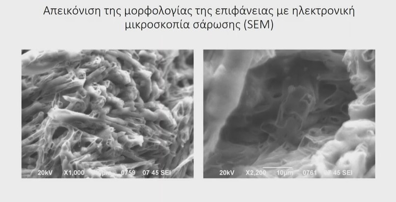 Λεπτά υμένια, αποτελούμενα από ενυδατωμένες ίνες, μπορούν να τοποθετηθούν σε κατάγματα και να δημιουργήσουν οστική αναγέννηση. Η κ. Χολή τα παρομοιάζει με τσιρότα σε νανοδιαστάσεις.