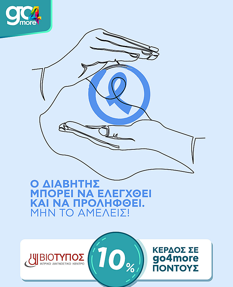 Σε αυτό το πλαίσιο, το πρόγραμμα επιβράβευσης go4more και τα Ιατρικά Διαγωνιστικά Κέντρα Βιότυπος, μας υπενθυμίζουν τη σπουδαιότητα της πρόληψης και προσφέρουν στα μέλη του προγράμματος ένα σημαντικό κίνητρο. Συγκεκριμένα, με τη χρήση των καρτών της Εθνικής Τράπεζας κερδίζετε 10% σε go4more πόντους στο κόστος των εξετάσεων. https://www.nbg.gr/el/go4more/prosfores