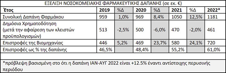 ''Η συνολική φαρμακευτική δαπάνη στα νοσοκομεία του ΕΣΥ μεταξύ των ετών 2019 - 2022 έχει αυξηθεί κατά 23,1%.