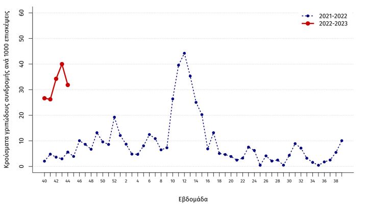 Εκτίμηση αριθμού κρουσμάτων γριπώδους συνδρομής ανά 1.000 επισκέψεις