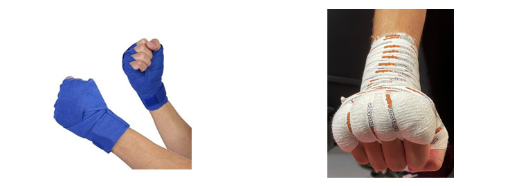 Εικόνα 1: Περίδεση με χρήση βαμβακερού επιδέσμου Εικόνα 2: Τεχνική ειδικής περίδεσης από πιστοποιημένο cutman.