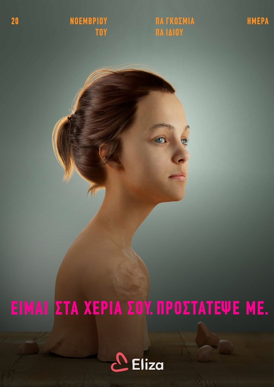Την αφίσα φιλοτέχνησε δωρεάν για το ΕΛΙΖΑ, η δημιουργική ομάδα της διαφημιστικής εταιρίας The Newtons Laboratory και προβάλλεται για 3 διαδοχικές ημέρες, 18 Νοεμβρίου – Ευρωπαϊκή Ημέρα κατά της Παιδικής Σεξουαλικής Εκμετάλλευσης, 19 Νοεμβρίου – Παγκόσμια Ημέρα κατά της Κακοποίησης του Παιδιού, και 20 Νοεμβρίου – Παγκόσμια Ημέρα για τα Δικαιώματα του Παιδιού, από τις 7μμ. έως τις 11μμ., στον ειδικό χώρο προβολών της πρόσοψης της Εθνικής Πινακοθήκης, με την ευγενική παραχώρηση του χώρου, από τη Διευθύντρια της Εθνικής Πινακοθήκης, κ. Συραγώ Τσιάρα.
