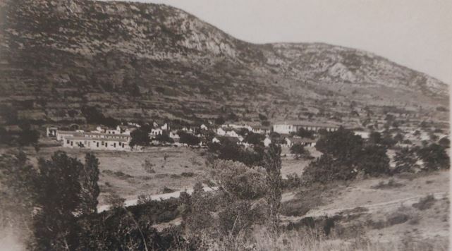 Οι πρώτες εγκαταστάσεις του Σανατορίου Ασθεστοχωρίου σε πανοραμική εικόνα, στα μέσα της δεκαετίας του 1930. Διακρίνονται από αριστερά οι στρατιωτικές εγκαταστάσεις των Άγγλων, οι γερμανικοί οικίσκοι.