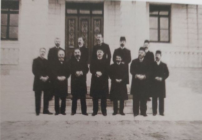 Ιατροί του νοσοκομείου. Πρώτος αριστερά ο Μωύς Μισραχή, δεύτερος ο Δ. Ζάννας (Γ. Πεντόγαλλος).