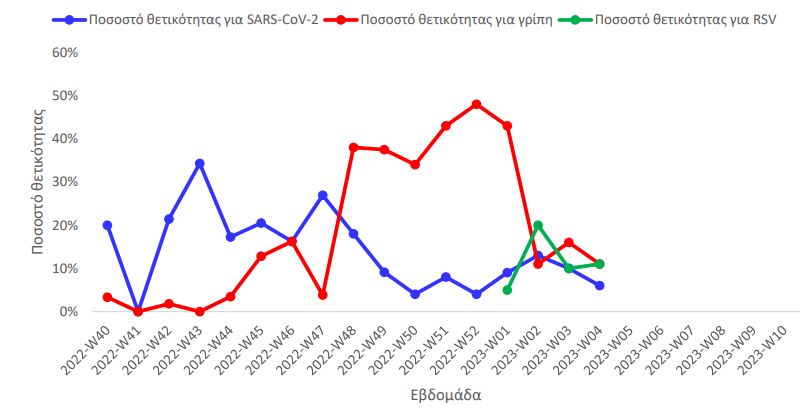 Στον αναπνευστικό συγκυτιακό ιό - RSV, η θετικότητα παρουσίασε μείωση.