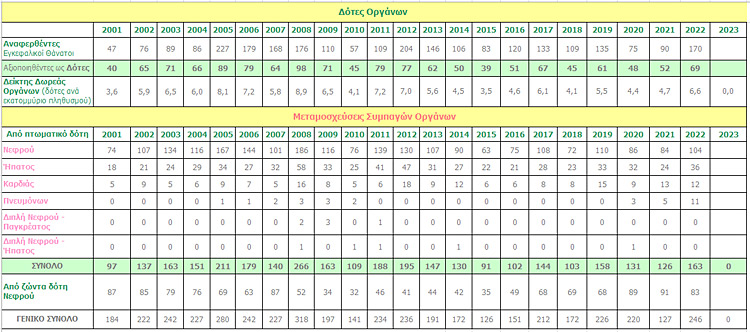 - Αξιοποιηθέντες ως δότες : 69, 89 (2005), 98 (2008).