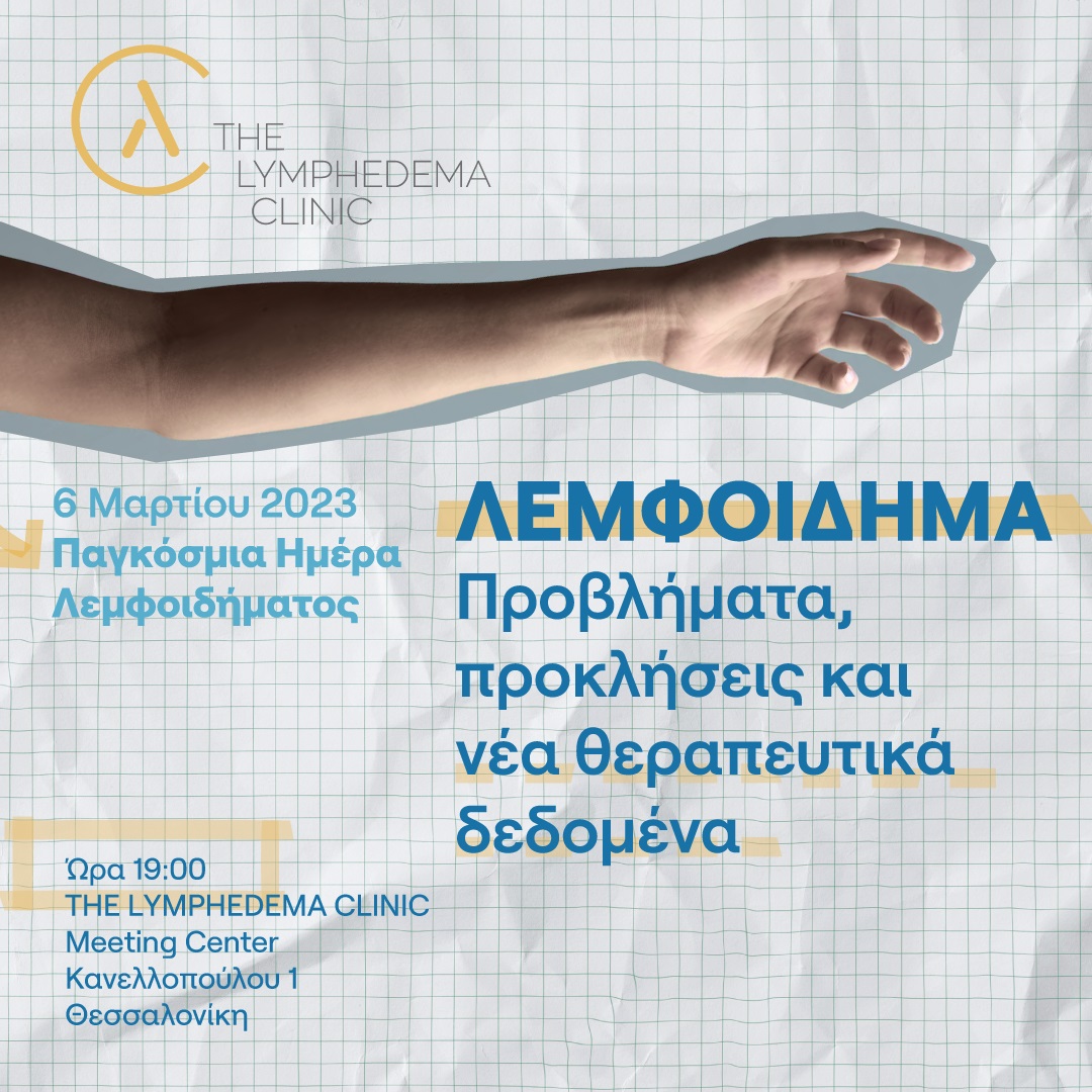 Ανοιχτή εκδήλωση με θέμα: «Λεμφοίδημα. Προβλήματα, προκλήσεις και νέα θεραπευτικά δεδομένα» διοργανώνει η «The Lymphedema Clinic», σε μια προσπάθεια να αναδείξει τα προβλήματα στη διαχείριση του λεμφοιδήματος αλλά και να προσεγγίσει πιθανές λύσεις στα ζητήματα που απασχολούν τους ασθενείς.