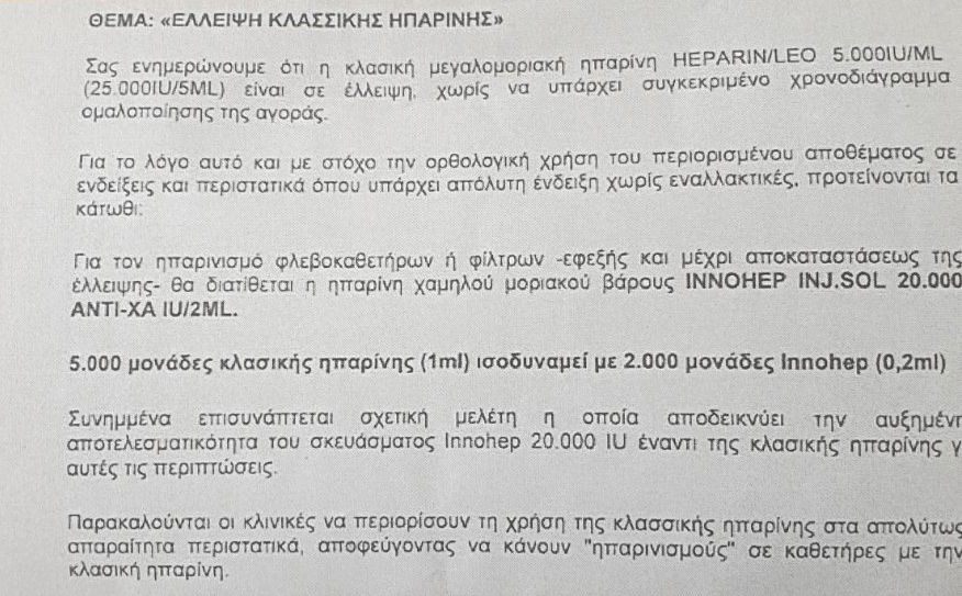 Ο πρόεδρος της ΠΟΕΔΗΝ τονίζει πως υπάρχουν και άλλα παρόμοια έγγραφα, τα οποία πιστοποιούν τις ελλείψεις. "Είναι κρίμα να κινδυνεύσει ασθενής επειδή δεν θα υπάρχει φάρμακο να τού χορηγηθεί", σημειώνει.