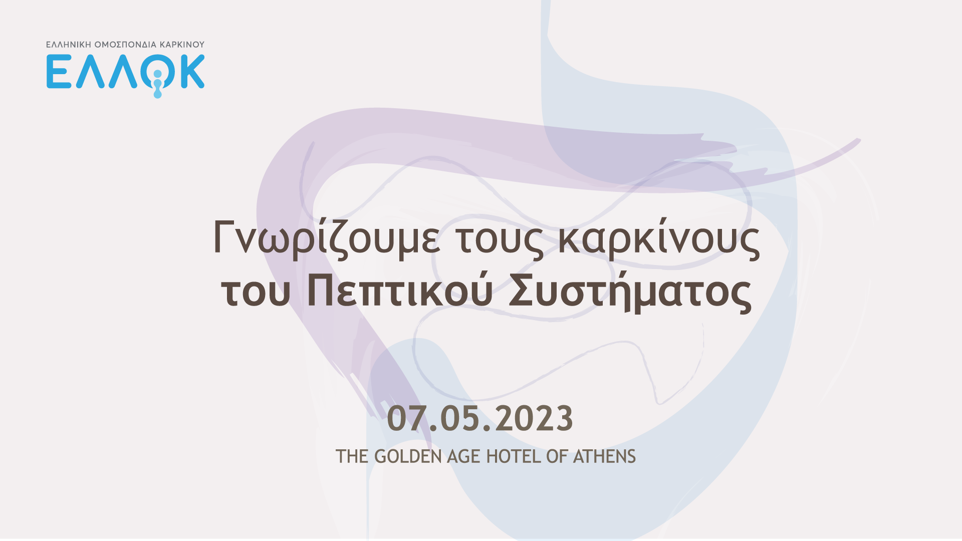 Η Ελληνική Ομοσπονδία Καρκίνου - ΕΛΛΟΚ διοργανώνει επιστημονική ημερίδα ενημέρωσης και ευαισθητοποίησης για τους καρκίνους του πεπτικού συστήματος την Κυριακή 7 Μαΐου 2023, στην Αθήνα, στο ξενοδοχείο The Golden Age Hotel.