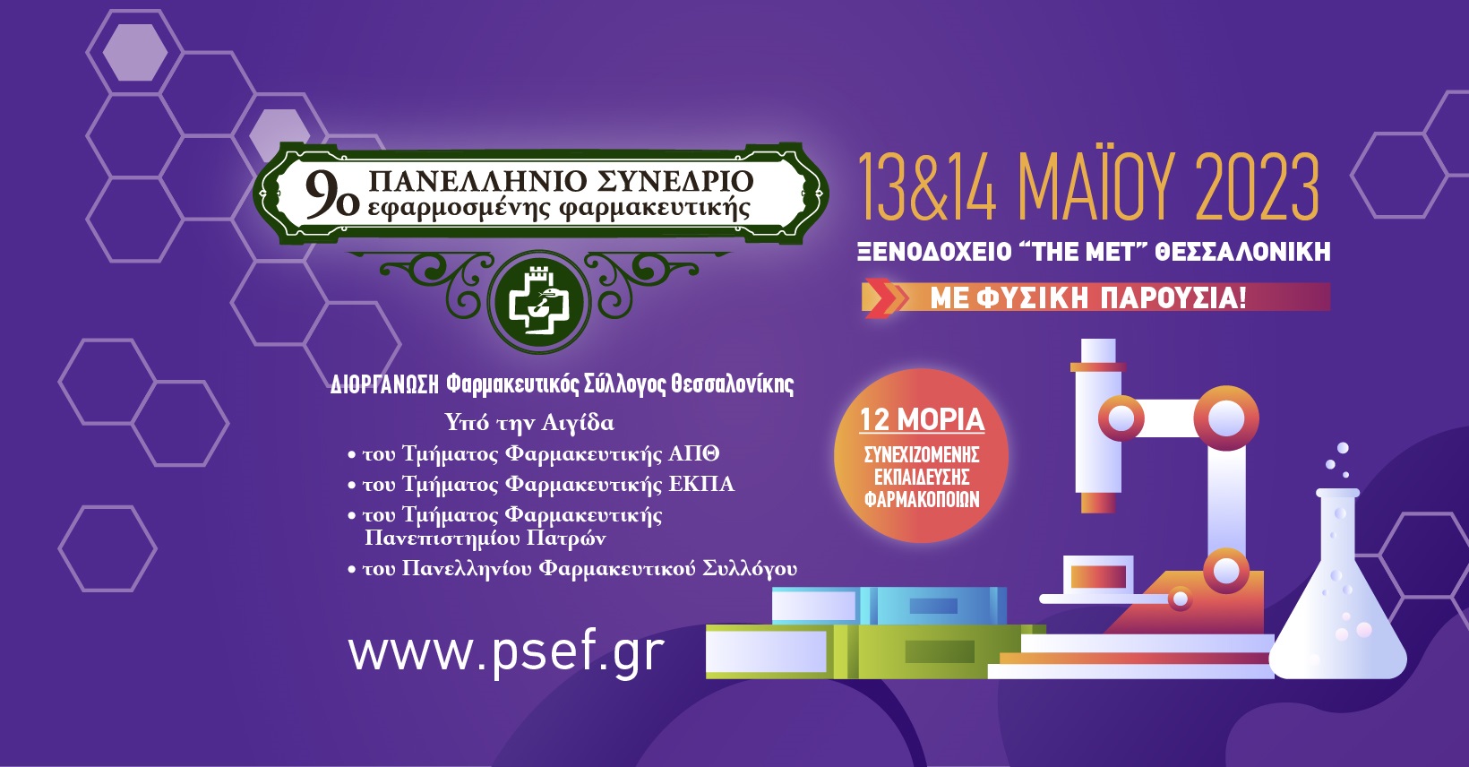 Με τη συμμετοχή 31 ομιλητών, καθηγητών Φαρμακευτικής και Ιατρικής από τα 3 Τμήματα Φαρμακευτικής της χώρας και από Ιατρικές Σχολές, καθώς και διακεκριμένων επιστημόνων υγείας, θα πραγματοποιηθεί το 9ο Πανελλήνιο Συνέδριο Εφαρμοσμένης Φαρμακευτικής, στις 13 και 14 Μαΐου 2023, στο ξενοδοχείο THE MET, στη Θεσσαλονίκη.