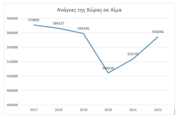 Αξιοσημείωτο είναι ότι κατά την διάρκεια της πανδημίας οι ανάγκες σε αίμα ήταν λιγότερες του συνήθους, λόγω του ότι η προτεραιότητα στην λειτουργία του ΕΣΥ ήταν η αντιμετώπισή της. Φαίνεται, επίσης, ότι η στρατηγική για εξορθολογισμό των μεταγγίσεων και της χρήσης του αίματος έχει θετικά αποτελέσματα.