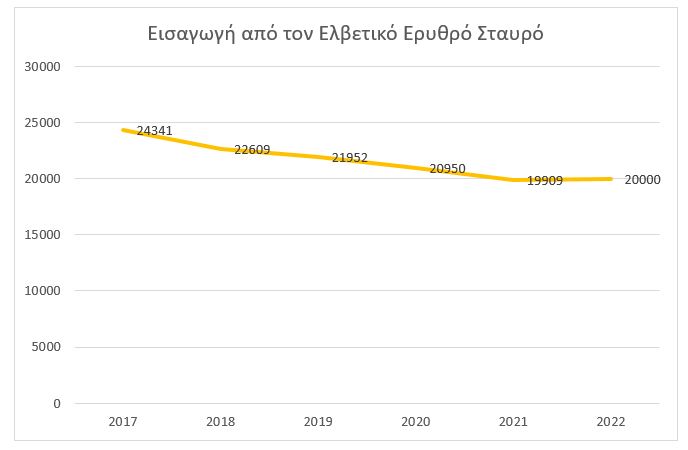 Λόγω του ότι στην Χώρα μας δεν έχει εμπεδωθεί η συνείδηση του σταθερού αιμοδότη, με συνέπεια και διάρκεια, αναγκαζόμαστε να εισάγουμε αίμα από τον Ελβετικό Ερυθρό Σταυρό, αλλά και οι εισαγόμενες ποσότητες μειώνονται στο χρόνο.