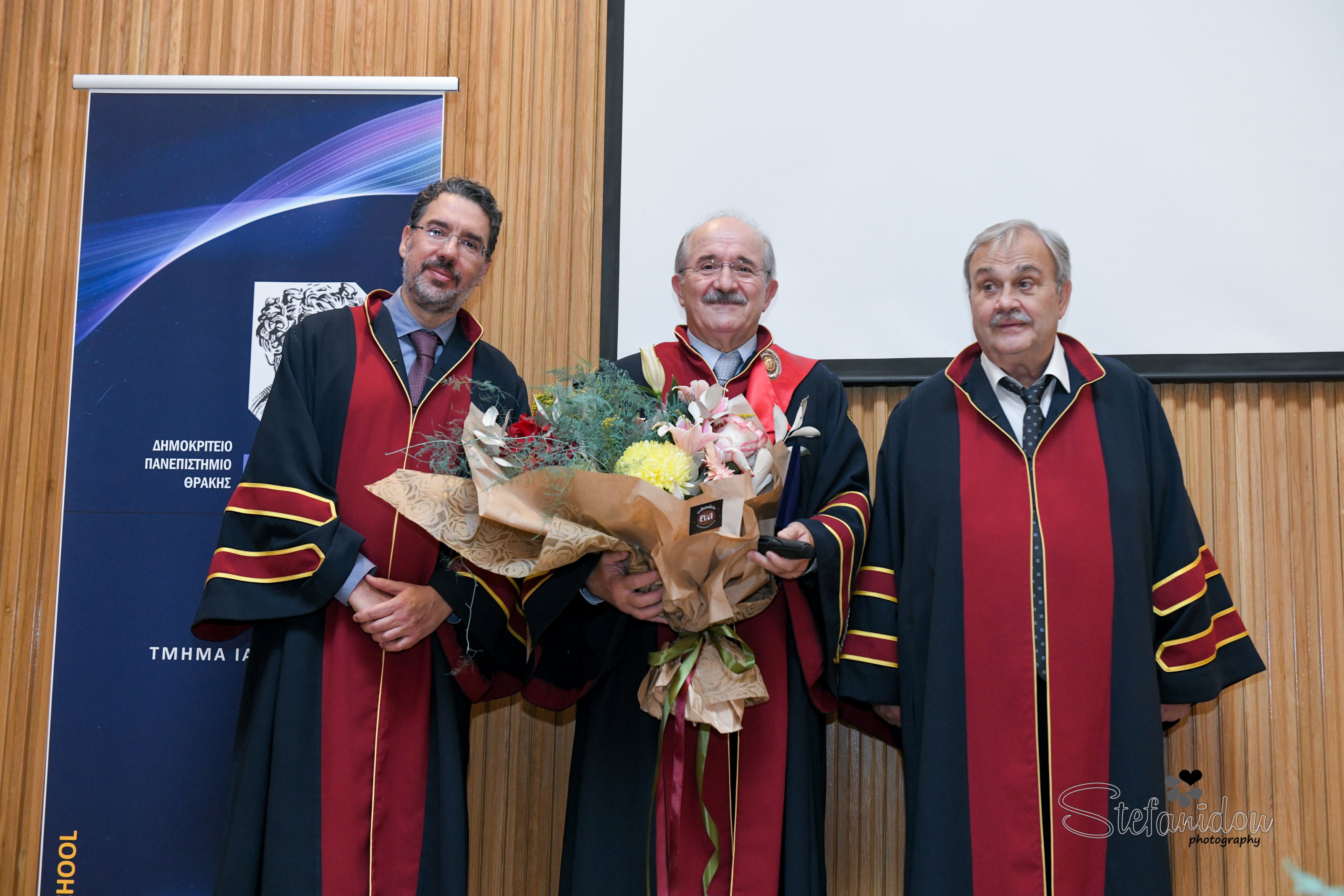 Σε ειδική τελετή που πραγματοποιήθηκε πριν από λίγες μέρες στην Αλεξανδρούπολη, ο καθηγητής Λάμπρης ανακηρύχθηκε σε επίτιμο Καθηγητή του Τμήματος Ιατρικής του Δημοκρίτειου Πανεπιστημίου Θράκης, με το οποίο διατηρεί συνεργασία επί δύο δεκαετίες, στηρίζοντας τις ερευνητικές του προσπάθειες και την μετεκπαίδευση των φοιτητών του.