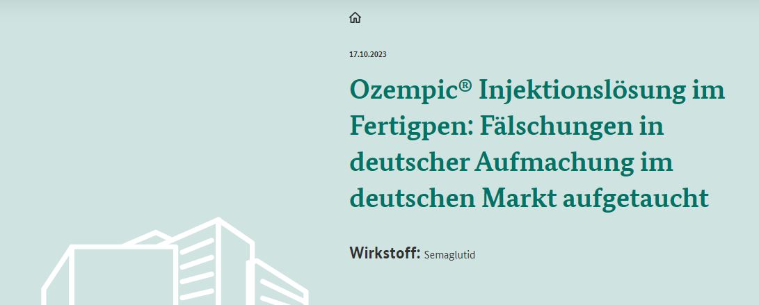 Οι ασθενείς σε όλη την Ευρωπαϊκή Ένωση ειδοποιούνται για αναφορές ότι έχουν εντοπιστεί πλαστογραφημένα στυλό Ozempic σε χονδρεμπόρους στην ΕΕ και στο Ηνωμένο Βασίλειο και δεν μπορούν να αποκλειστούν περαιτέρω αναφορές.