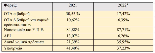 Όπως αναφέρουν οι συντάκτες της έκθεσης, το υψηλότερο ποσοστό απευθείας αναθέσεων παρατηρήθηκε στα νοσοκομεία. Μικρό ποσοστό των συμβάσεών τους ανατίθεται μέσω διαγωνιστικών διαδικασιών, λόγω χρόνιων συστημικών αδυναμιών, σε συνδυασμό με τις επιτακτικές ανάγκες προμήθειας φαρμάκων και λοιπών αναλωσίμων.
