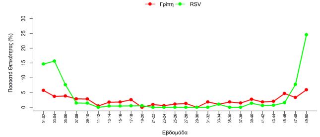 Σημαντική αύξηση θετικότητας παρατηρείται και στα νοσοκομειακά δείγματα για αναπνευστικό συγκυτιακό ιό (RSV).